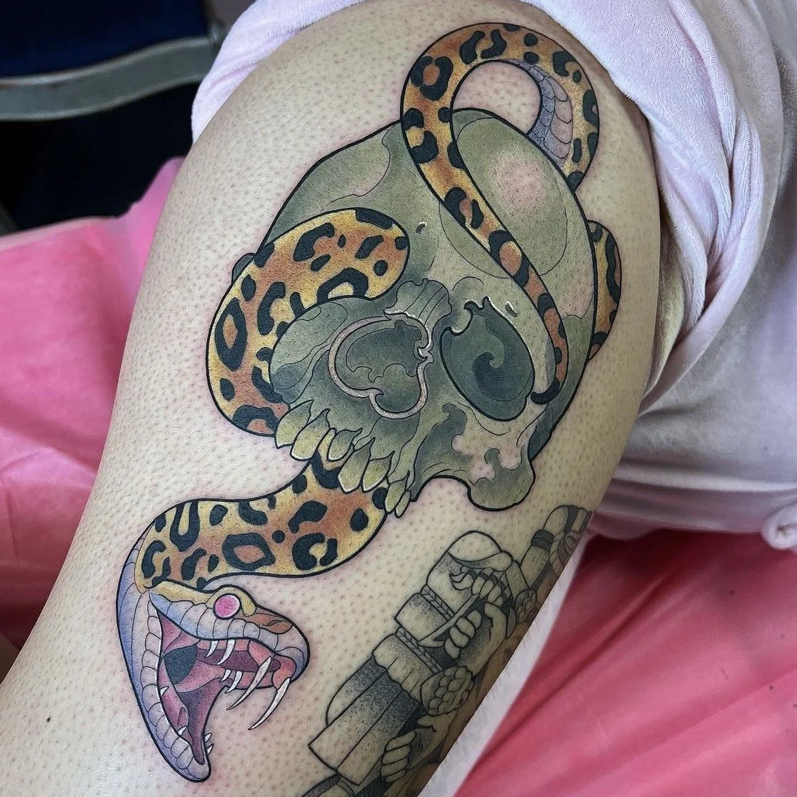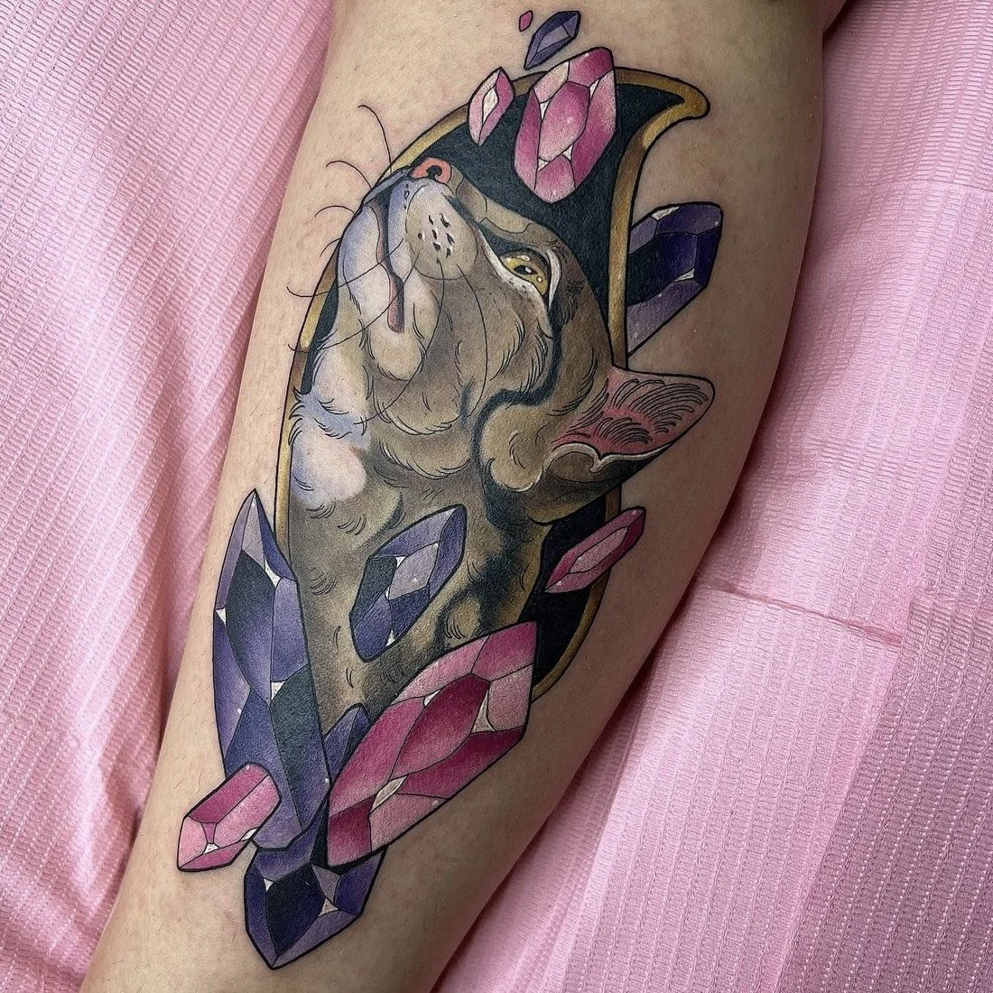 Im a fantasy tattoo artist located in San Diego Ca. at The Hideaway Tattoo. I specialize in large, full-color tattoos with organic subjects, like animated characters, fantasy, magic, animals & creatures. I love working on all things magical, cute and spooky. I also specialize and love creating peoples pets into their own cartoon characters.